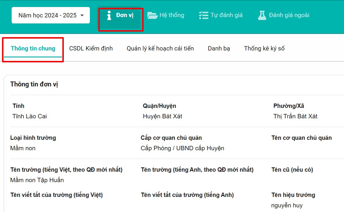 Bước 3: Nhập đầy đủ các thông tin cần thiết của nhà trường, bao gồm như: