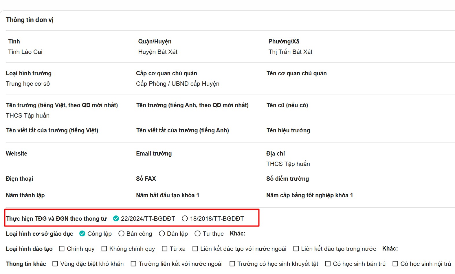 - Loại hình cơ sở giáo dục (công lập, tư thục, dân lập…)