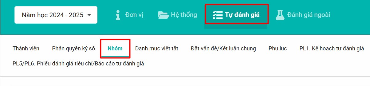 Bước 1: Vào menu Tự đánh giá → chọn Nhóm