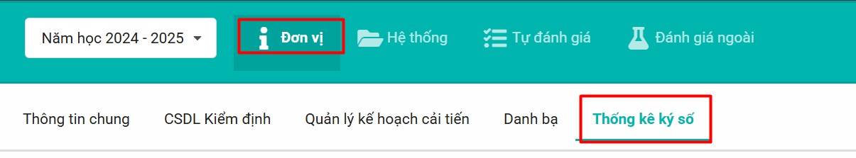 Bước 1: Vào menu Đơn vị → chọn Thống kê ký số