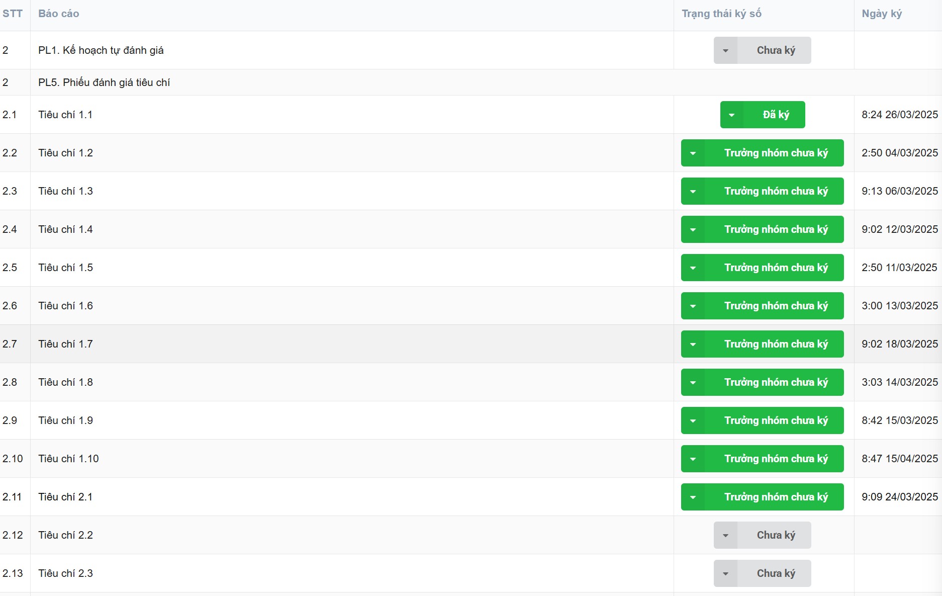 - Trường cần đảm bảo người ký đúng vai trò, đúng quy trình, đặc biệt với các phiếu đánh giá tiêu chí trong nhóm.