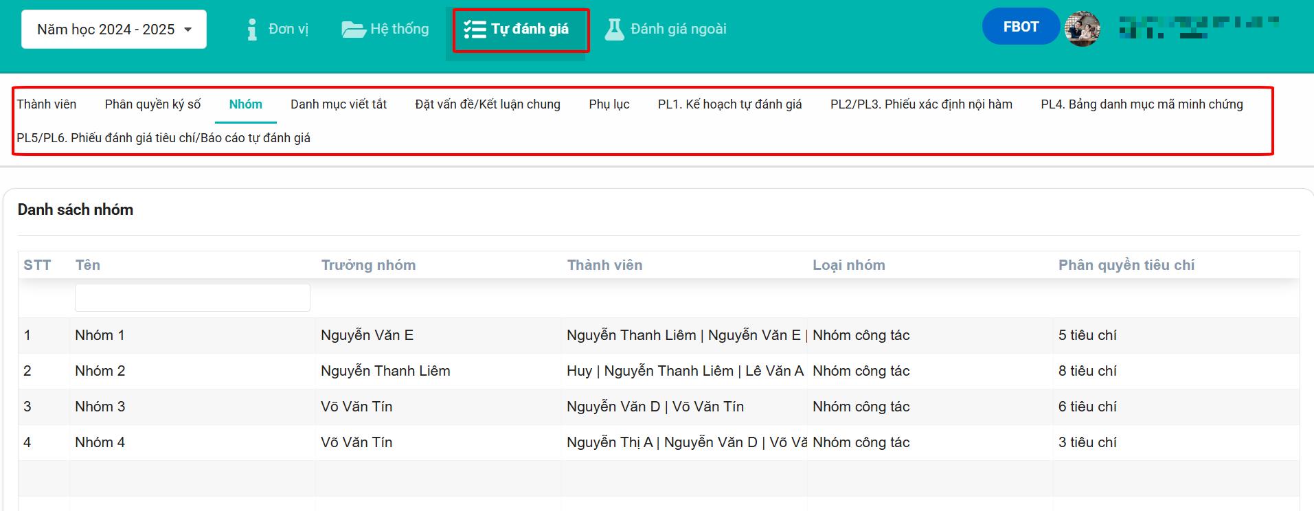 Bước 2: Trước khi tiến hành đánh giá, Thầy/Cô có thể vào mục Tự đánh giá để tham khảo thông tin mà trường đã nhập, gồm: