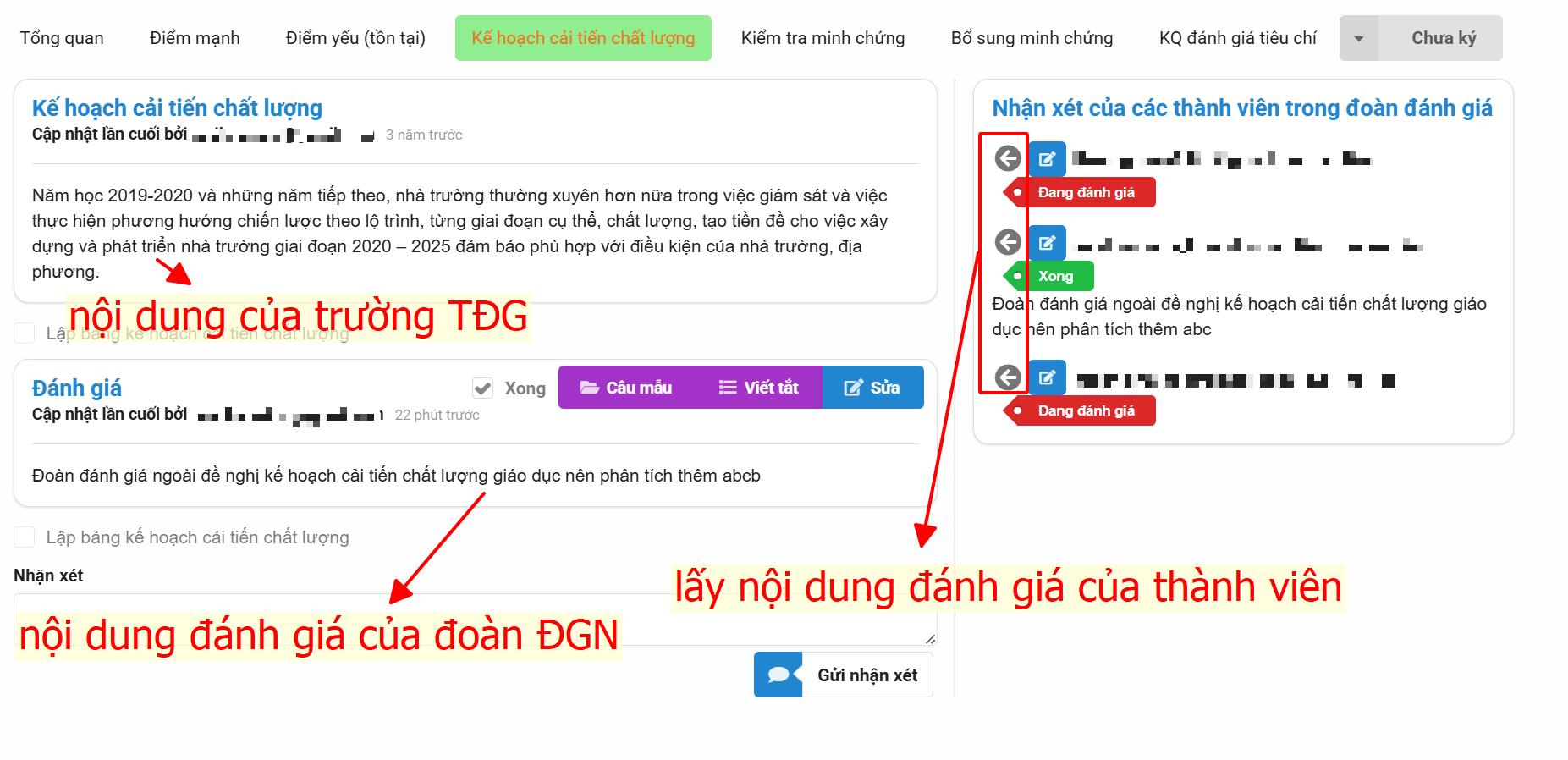 Phần mềm sẽ tự động hiển thị nội dung đánh giá của thành viên đã được phân công tiêu chí đó.