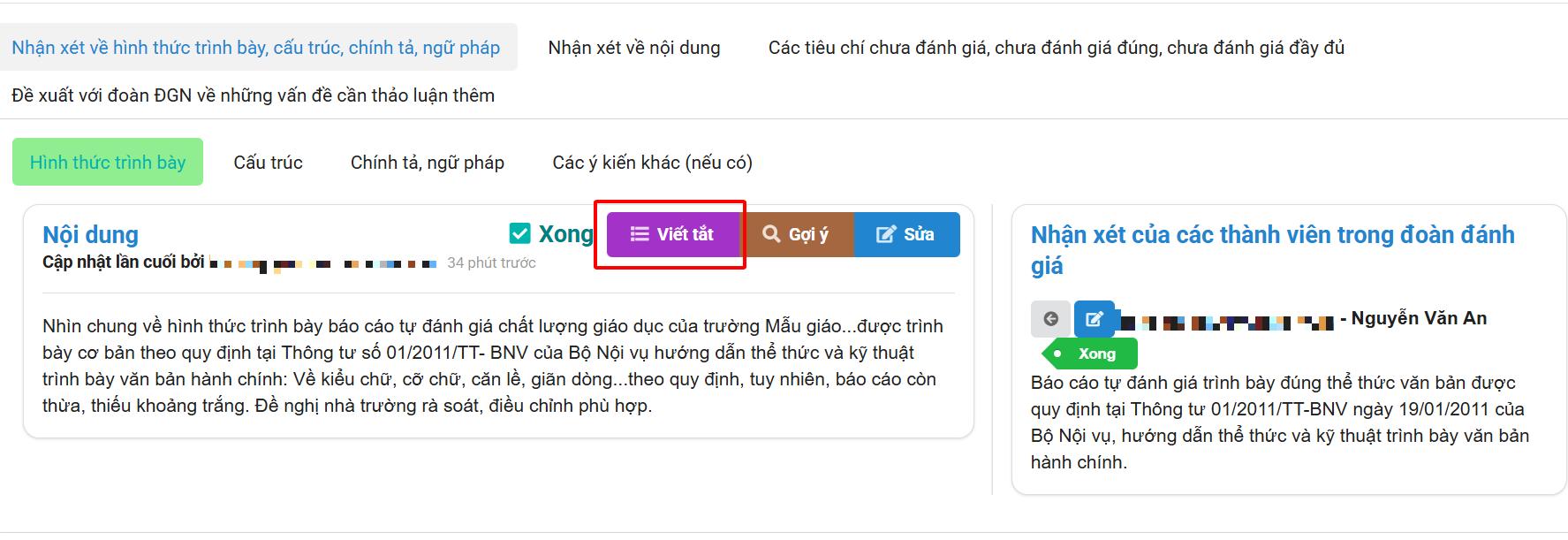 Bước 2: Nhập hoặc tổng hợp nội dung đánh giá