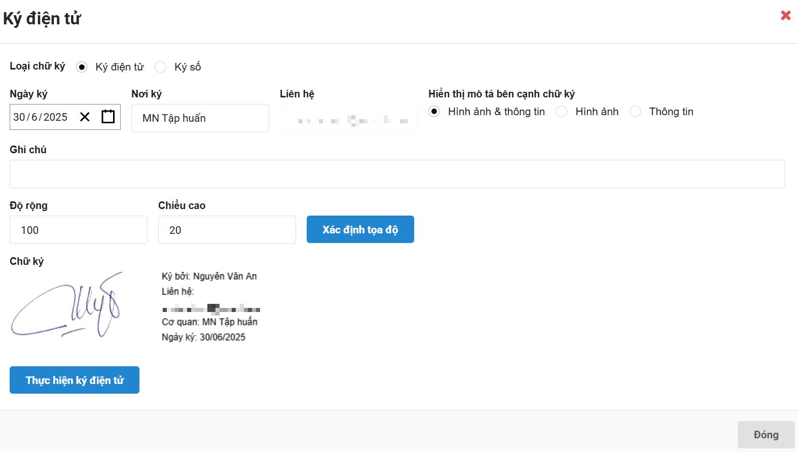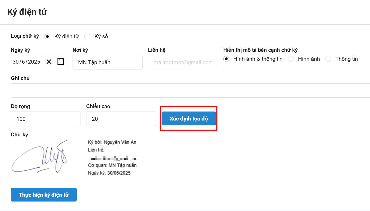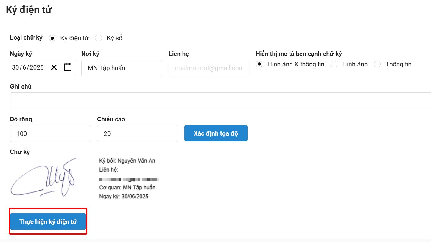 Ghi chú (nếu cần): nhập nội dung ghi chú sẽ hiển thị kèm theo chữ ký.