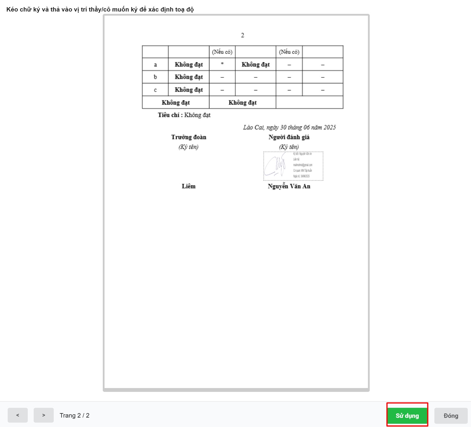 Sau khi định vị chữ ký xong → bấm nút Sử dụng để xác nhận vị trí ký.